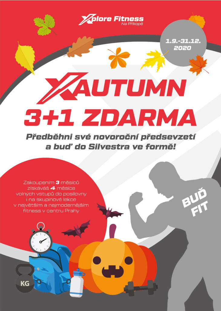 Xplore Fitness je již třetím rokem vašim pomocníkem k dosažení individuálních cílů nejen širokou nabídkou skupinových lekcí, netradičními a skvěle vybavenými prostory, ale nyní také atraktivní cenovou nabídkou v podobě podzimního členství XAUTUMN 3+1. V rámci tří měsíčního členství získáváte 1 měsíc ZDARMA.