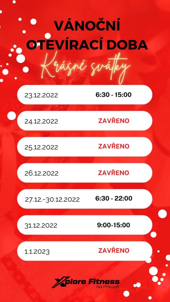 VÁNOČNÍ OTEVÍRACÍ DOBA | Xplorefitness Praha 1