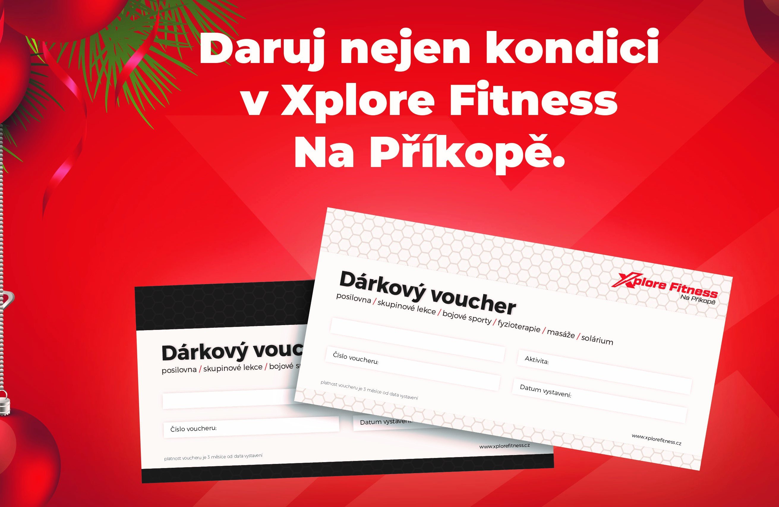 Blíží se čas Vánoc a každý z nás řeší výběr dárku pro své nejbližší. Neumíme poradit s hmotnými dárky, ale rádi pomůžeme v oblasti sportu, masáží a fyzioterapie s doporučením toho nejvhodnějšího dárku z našeho portfólia služeb. Darujte Xplore Fitness dárkový voucher.