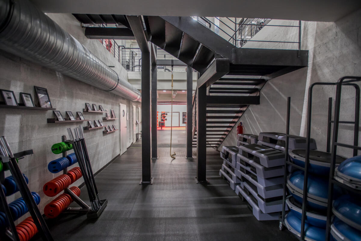 - jednotlivé sportovní zóny jsou rozděleny do 3 pater (kardio zóna, posilovna, sály pro skupinové lekce a zónou pro bojové sporty), kterým prochází centrální schodiště s prosklenou střechou tudíž jsou prostory nejen atypicky zajímavé, vzdušné, ale také s denním světlem