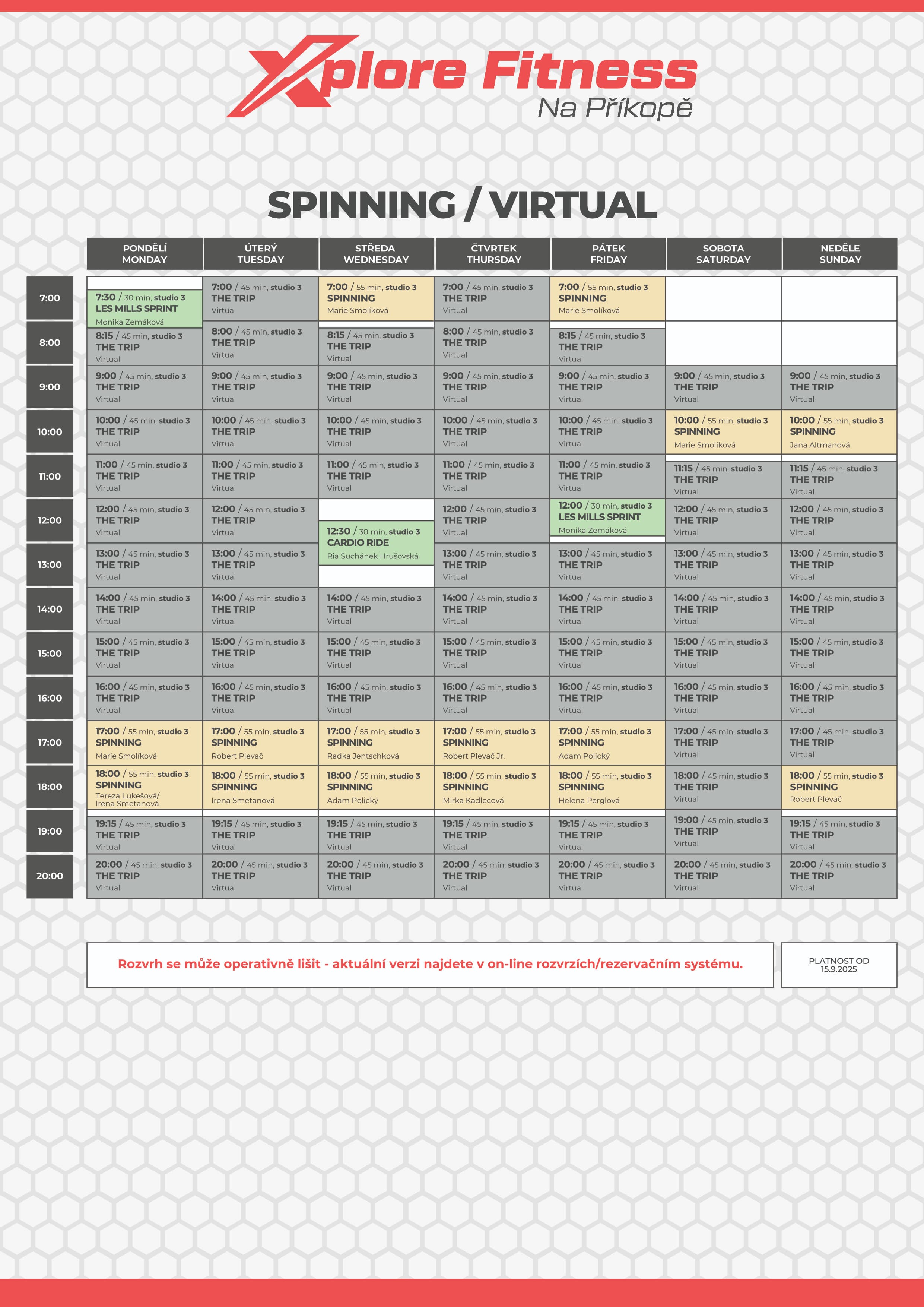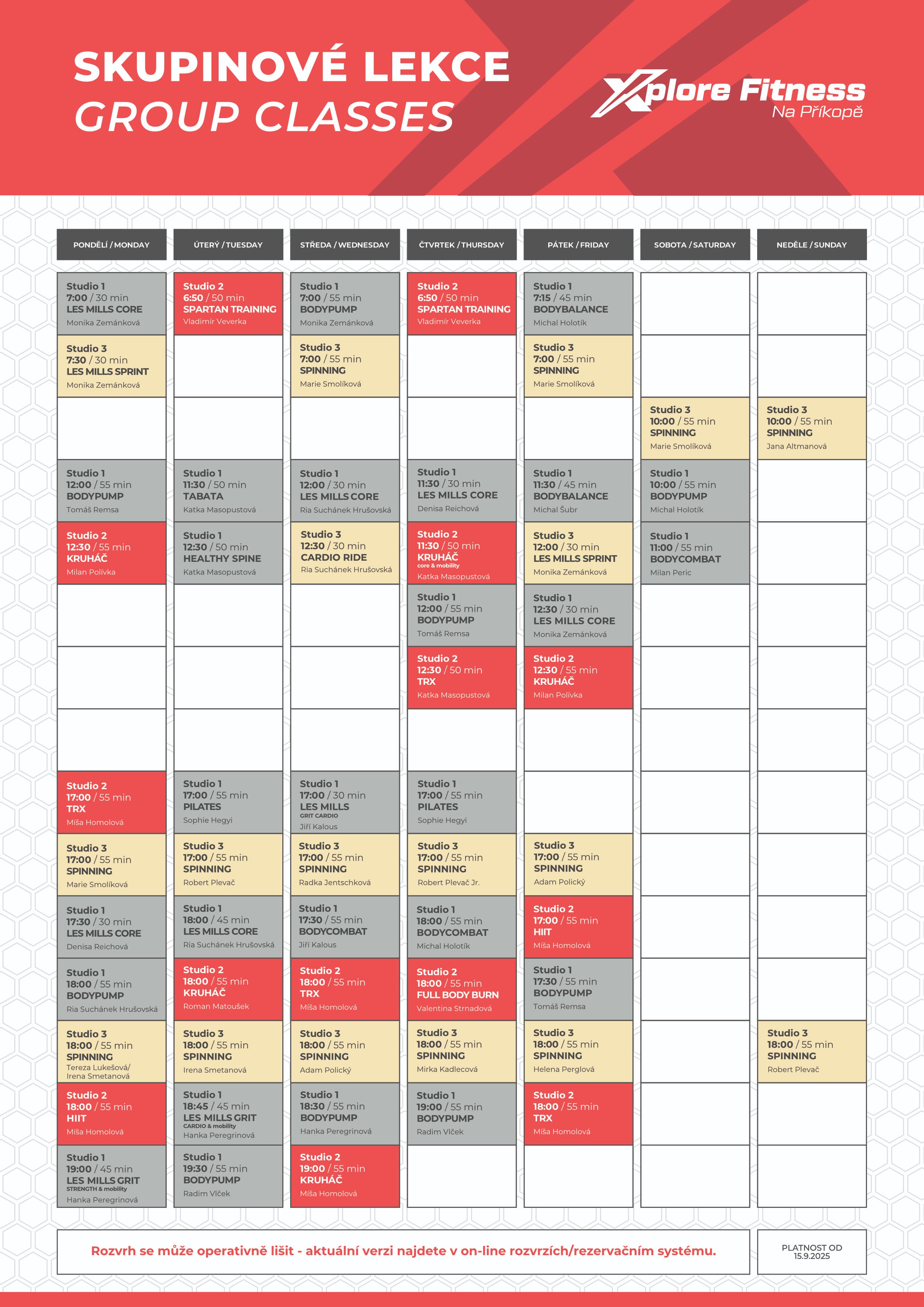(rozvrhy se můžou operativně lišit – aktuální verze najdete v on-line rozvrzích/rezervačním systému)